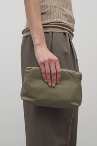 Ruched clutch in buttery goatskin leather with hidden adjustable shoulder strap and hinged frame closure. More information - 10.83 x 1.57 x 7.09 in. - Shoulder Strap: 23.62 in. - 100% Goatskin Leather - Lined in 100% Leather - Made in Italy - Style: W1280L614SAGS