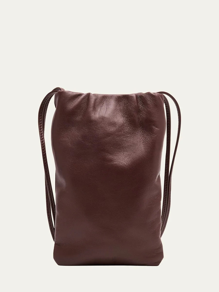 THE ROW "Bourse" phone case in silk leather Knotted shoulder straps; approx. 25" drop Open top with magnetic closure One main compartment Embossed front logo Approx. 8.3"H x 4.9"W x 0.6"D Made in Italy Online Inquiries: BGS21_D59Z0| Store Inquiries: #5033696
