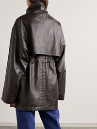 Merging cool shapes with quality materials ensures The Row's designs always look as good as they feel. This 'Herbie' jacket has been made in Italy from supple leather and designed with an exaggerated funnel neck and storm flaps. Use the drawcords to cinch the relaxed fit. Size & Fit - Fits true to size, take your normal size - Designed for a relaxed fit, use the adjustable drawcord to cinch in at the waist - Firm, non-stretchy leather - Model is 180cm/ 5'11" and is wearing a US 4 Model measurements: - Bust: 81cm/ 32” - Waist: 62cm/ 24.5” - Hip: 88cm/ 34.5” Details & Care - Dark-brown leather - Concealed button fastenings through front - 100% leather (Lamb); lining: 100% silk - Designer color: Brown Wood