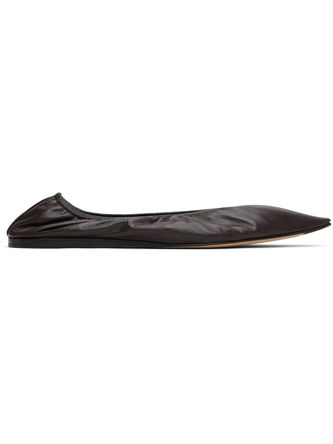 Buffed lambskin ballerina flats in brown. · Pointed toe · Elasticized collar · Leather sole with rubber injections Supplier color: Lacquer brown Lambskin. Made in Italy 251359F118017