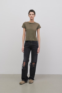 Straight-leg boyfriend jean in textured Italian cotton denim with tonal topstitching and classic 5-pocket construction. More information - 100% Cotton - Made in Italy - Style: 7776W3102BLK
