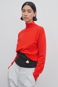 Long-sleeved turtleneck top in soft midweight cashmere with hidden internal stitching to create a natural draping effect in front. More information - 100% Cashmere - Made in Italy - Style: 7135F377RED