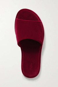 EDITORS'NOTES Even The Row's more laid-back designs have a quietly luxurious feel. These 'Canal' slides are made from plush velvet and set on cushioned soles for a comfortable fit. Wear them with anything from pants to dresses. SIZE & FIT - Fits true to size, take your normal size - Italian sizing DETAILS & CARE - Slight heel - Burgundy velvet - Slip on - Designer color: Garnet