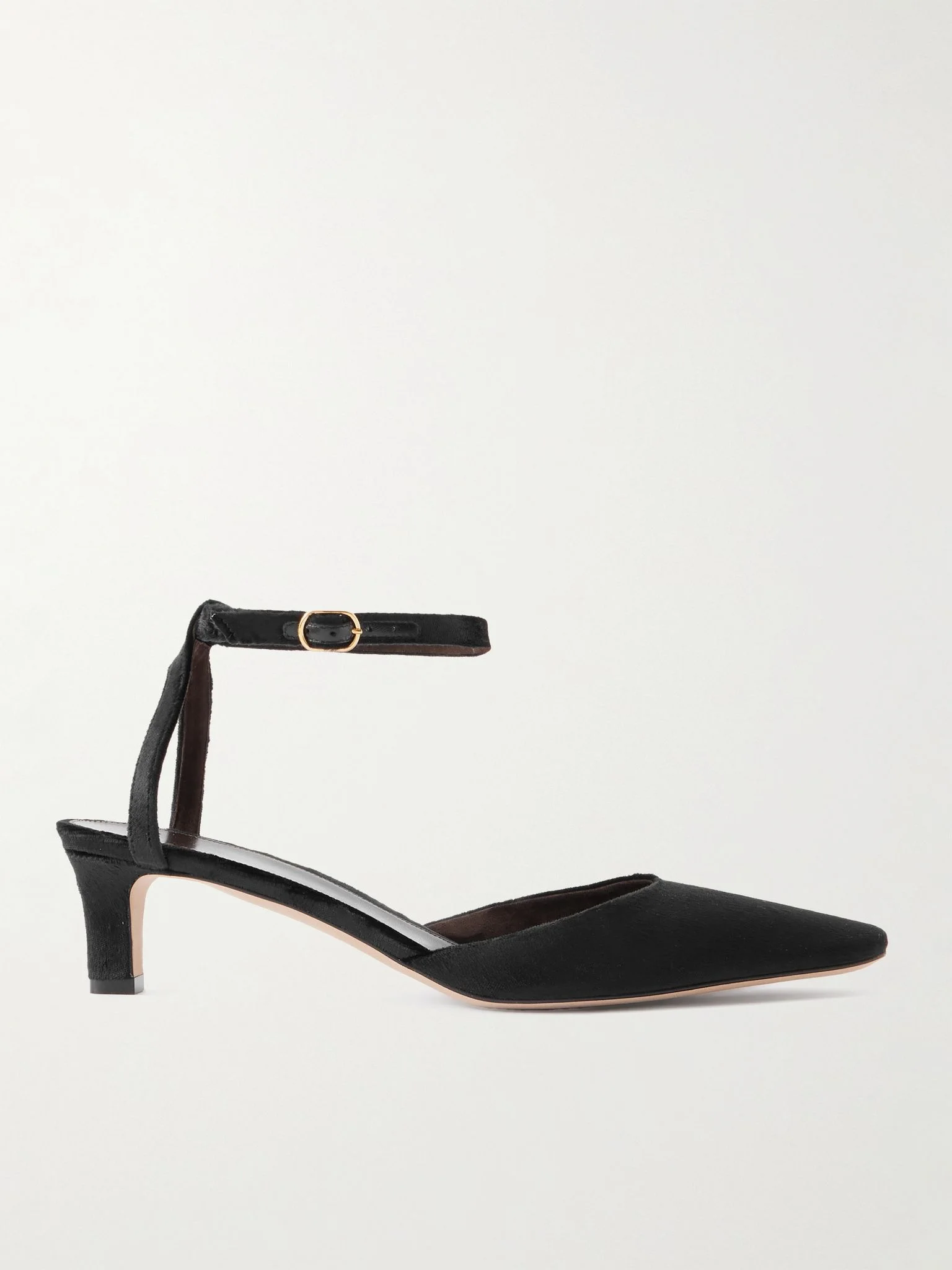 The Row's 'Carla' pumps will look chic with everything from midi skirts to the brand's signature tailoring. Made in Italy from luxurious black velvet, they're set on 45mm heels and have elongated square toes. Size & Fit - Fits true to size, take your normal size - Italian sizing Details & Care - Heel measures approximately 45mm/ 2 inches - Black velvet - Buckle-fastening ankle strap