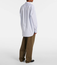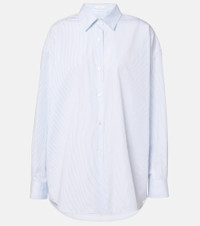 For effortless everyday dressing, nothing beats a classic button-down shirt like The Row's Caster style. Made from washed cotton poplin for an oversized fit, it's printed with a striped motif and finished with mother-of-pearl buttons. Product Details - Material: 100% cotton - Care instructions: machine wash at 30 degrees - Made in Italy - Designer color name: White / Sky Blue - Closure: buttoned front - Details: 100% mother-of-pearl - Buttoned cuffs - Contains non-textile parts of animal origin - Item number: P01031361 Size & Fit - True to size - Dropped shoulders - Designed for a loose fit - Non-stretchy fabric - Falls below the hip - The model seen in the picture is 178cm-5'10" and wearing a size US 4