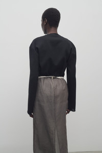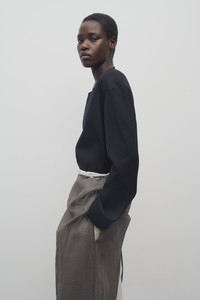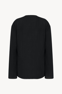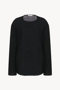 Relaxed long-sleeved top in soft virgin wool with dropped shoulders, rounded neckline, and raw finish. More information - 100% Wool - Lined in 100% Silk - Made in Italy - Style: 8900W3461BLK