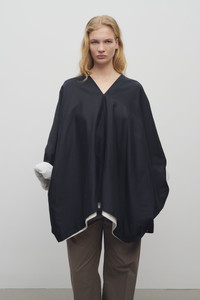 Voluminous poncho top in woven cotton and silk voile with slit v-neckline and handkerchief hem. More information - 69% Cotton, 31% Silk - Lined in 100% Silk - Made in Italy - Style: 8901W3838BLK