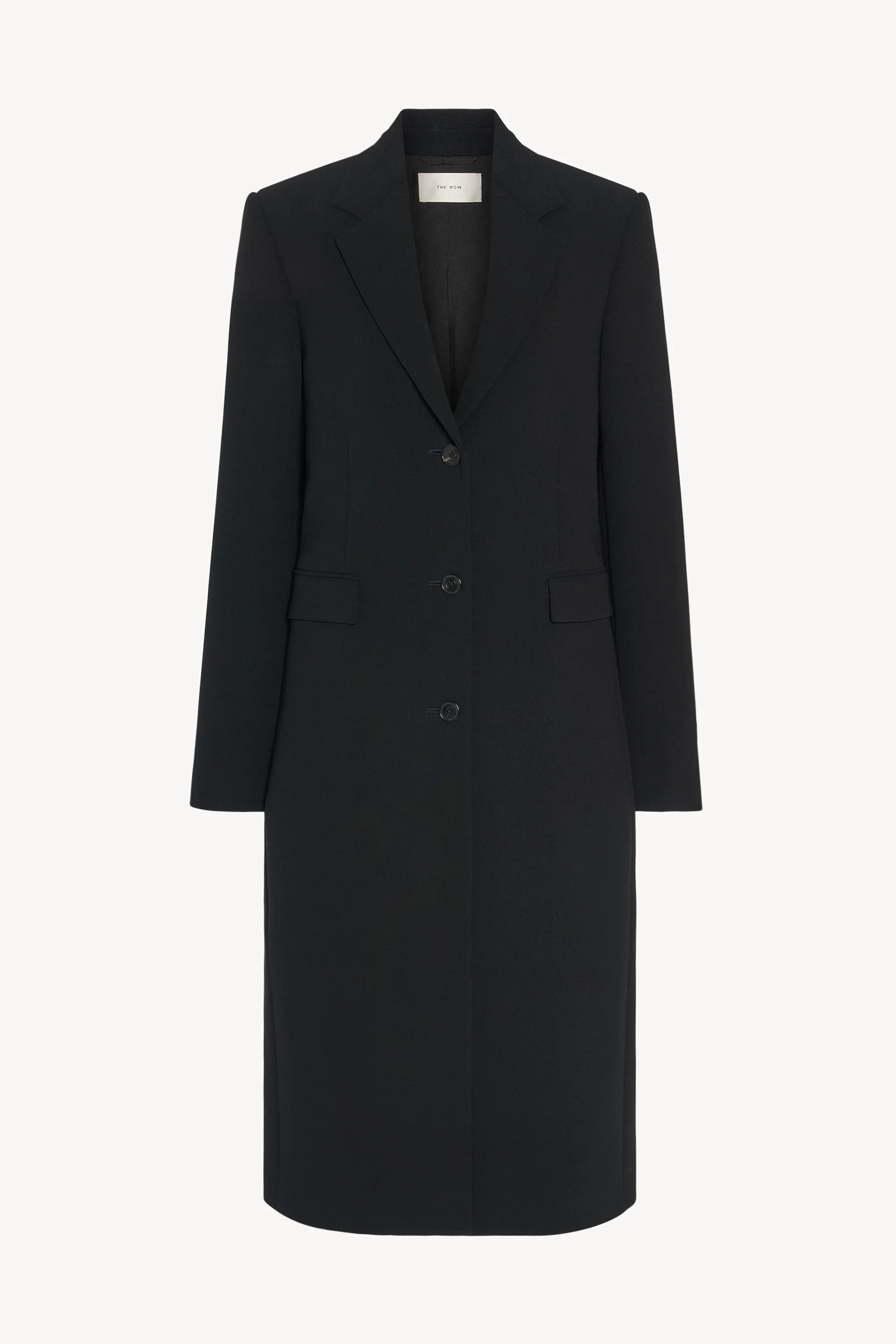 Single-breasted Chesterfield coat in structured matte virgin wool with notch lapel, front flap pockets, and horn button closure. More information - 96% Wool, 4% Elastane - Lined in 100% Silk - Made in Italy - Style: 10163W4078BLK