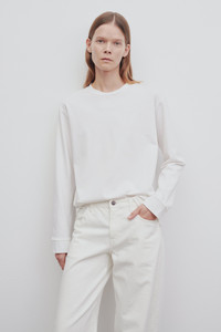 Oversized long-sleeved t-shirt in soft organic Pima cotton with dropped shoulder and wide crew neckline. More information - 100% Cotton - Made in U.S. - Style: 6891K220WHT