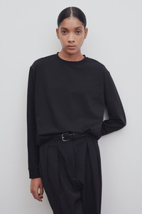 Oversized long-sleeved t-shirt in soft organic Pima cotton with dropped shoulder and wide crew neckline. More information - 100% Cotton - Made in U.S. - Style: 6891K220BLK