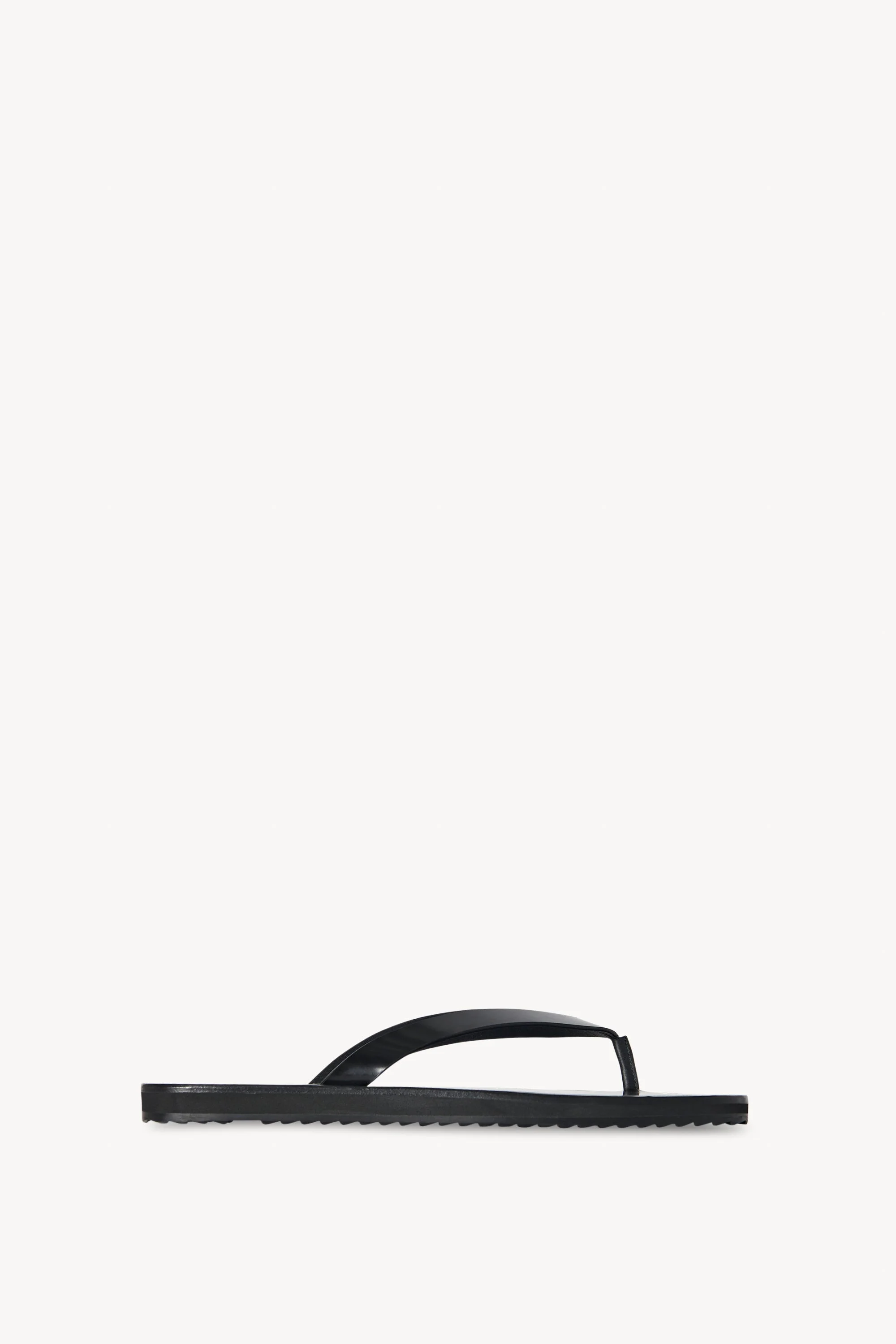 Refined flip flop sandal in shiny calfskin leather with stitched leather detailing and lightly treaded sole. More information - 100% Calfskin Leather - Made in Italy - Style: F1388L60BLK