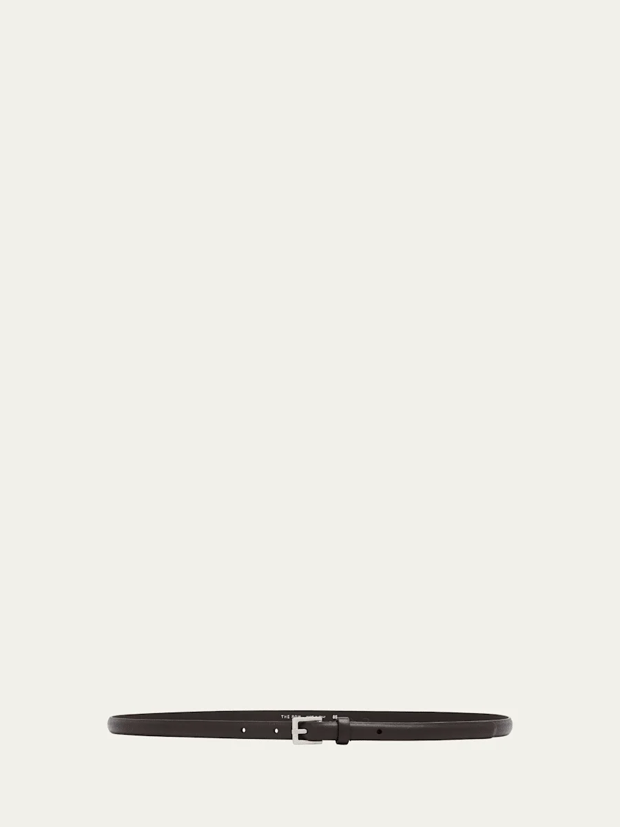 THE ROW "City" belt crafted in supple calfskin leather with silvertone hardware Skinny width Adjustable fit Leather Made in Italy Online Inquiries: BGS21_D5BRR| Store Inquiries: #5068697