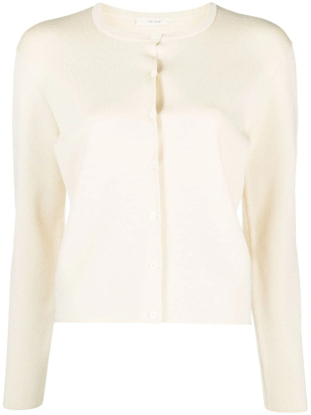 Corole ribbed-knit cardigan This Corole cardigan is the epitome of The Row's understated and timeless approach to fashion. Finely ribbed-knit from ecru threads with a subtle glossy finish, it remains steadfast in its classic crew-neck design and slim silhouette. Highlights - Ecru - Fine ribbed - Crew neck - Front button fastening - Long sleeves - Straight hem Made in Italy Composition Buffalo Bone 100%, Viscose 84%, Polyester 11%, Polyamide 3%, Spandex/Elastane 2% SIZE & FIT Model measurements Height 5 ft 11 in(1.8 m) Bust/Chest 34.25 in(87 cm) Hips 35.82 in(91 cm) Waist 24.8 in(63 cm)