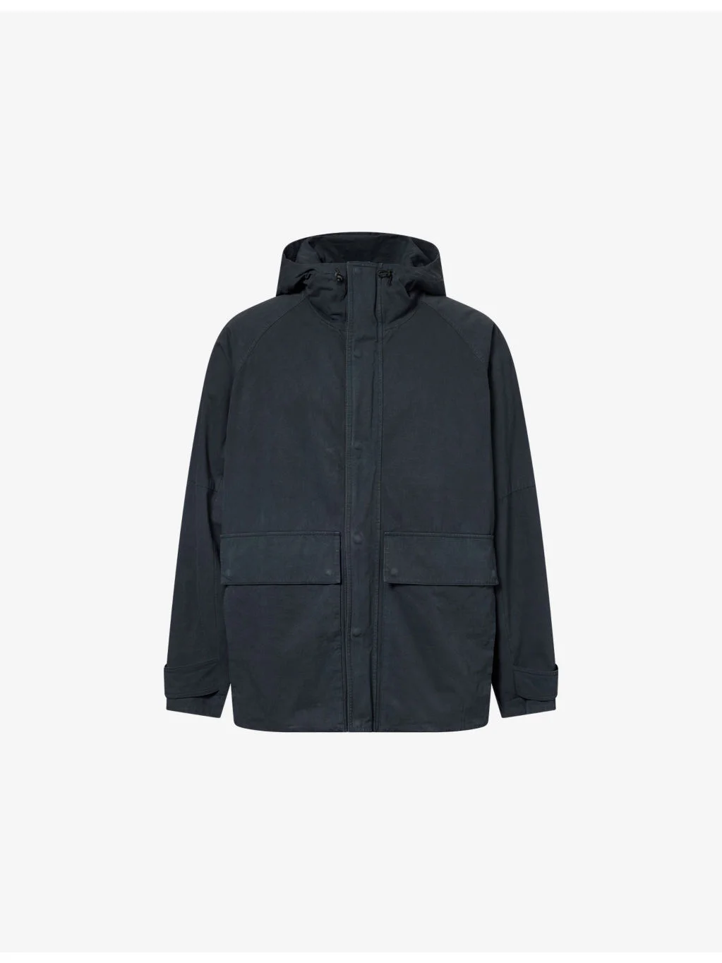 PRODUCT DETAILS - The Row cotton jacket - 100% cotton - Concealed snap and zip fastenings at front - Regular fit, high neck, drawstring hood, long sleeves, adjustable tabs at cuffs, flap pockets at front - Machine wash at 30°C - Made in Italy - Size UK 38: length 30in / 76cm, chest 48in / 122cm - Model is 6ft 2in/1.88m and wears a size UK 38 - Midweight, non-stretch Ref: R04534217