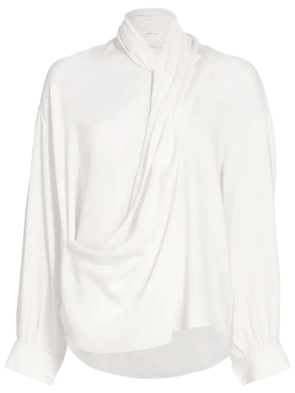 Darnelle draped silk blouse Highlights - White - Silk - Draped design - High neck - Long sleeves - Buttoned cuffs - Asymmetric hem Imported Composition Silk 100% Washing instructions Dry Clean Only