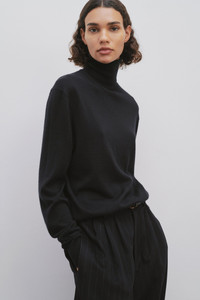 Classic turtleneck in fine cashmere silk with long sleeves and ribbed collar, cuffs, and hem. More information - 69% Cashmere, 31% Silk - Made in Italy - Style: 7403Y627BLK
