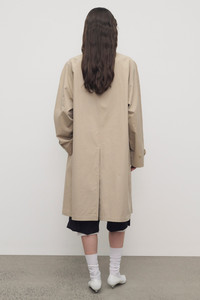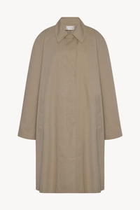 Single-breasted car coat in sanded Pima cotton with relaxed knee-length fit, raglan construction, slant welt pockets, and concealed front placket with button closure. More information - 100% Cotton - Lined in 100% Cotton; 100% Silk - Made in Italy - Style: 10766W4323BEI