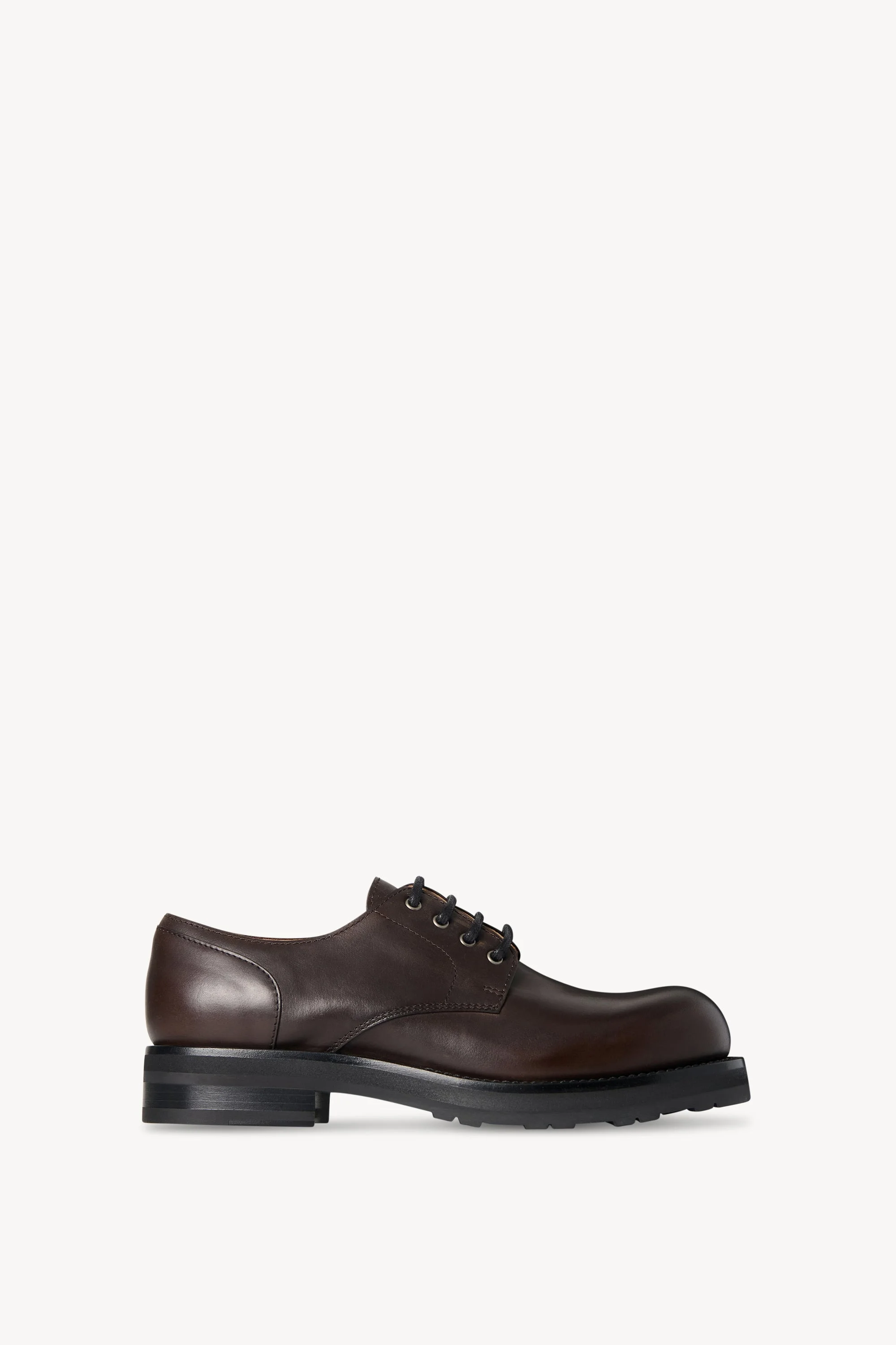 Derby shoe in glossy calfskin leather with round toe, laced front, and treaded rubber sole. More information - 100% Calfskin Leather - Synthetic sole - Made in Italy - Style: F1711L609LQB