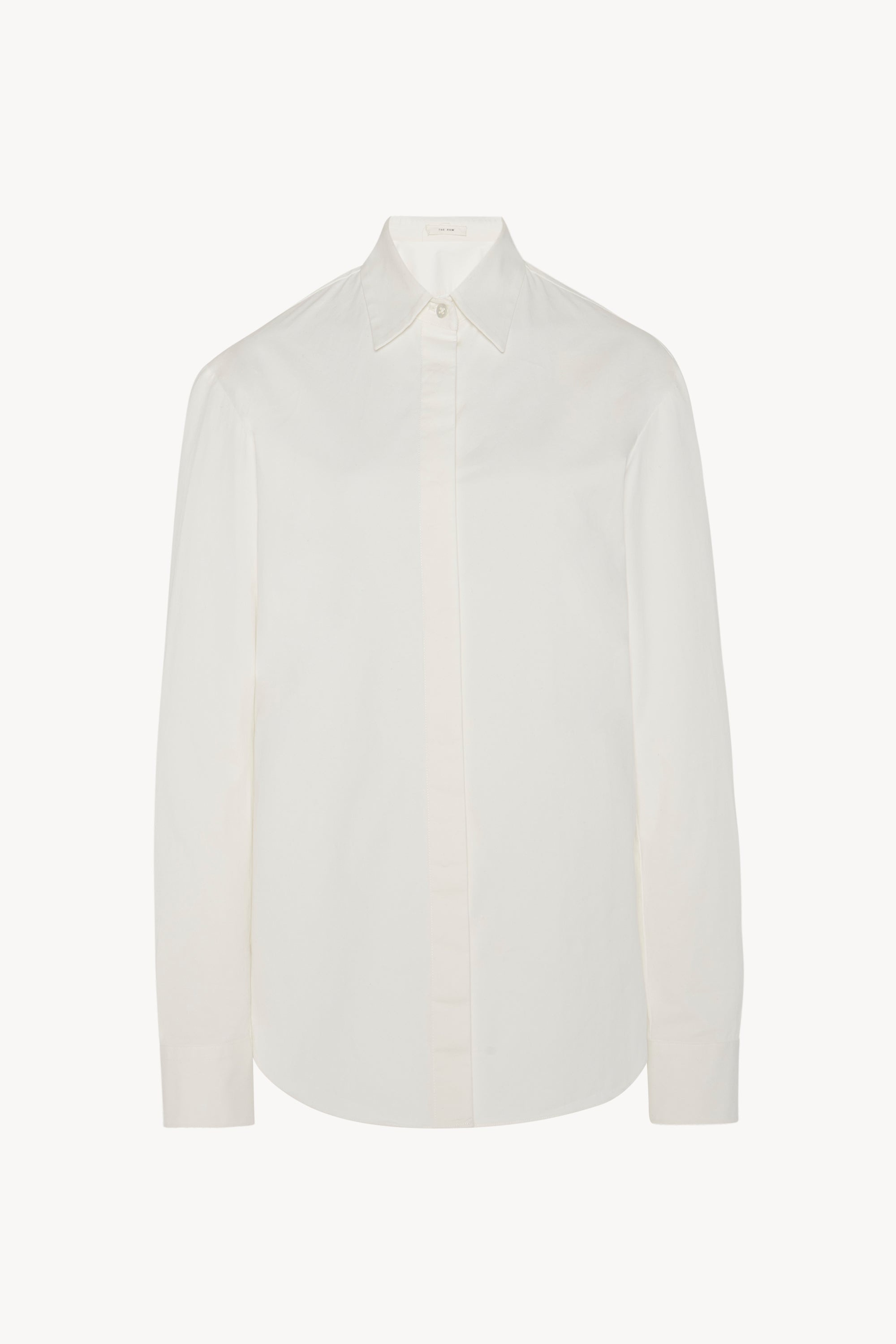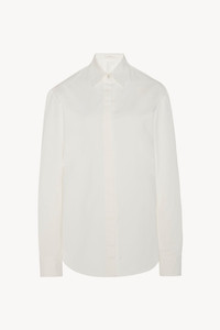 Straight fit button-up shirt in soft cashmere cotton drill with classic shirt hem finish and yoke at back. More information - 95% Cotton, 4% Cashmere, 1% Elastane - Made in Italy - Style: 7307W1699WHT