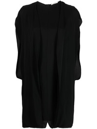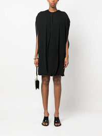 draped silk mini dress Highlights - Black - Silk - Draped design - Round neck - Rear zip fastening - Drop shoulder - Sleeveless - Shift style - Above-knee length Made in Italy Composition Silk 100% SIZE & FIT Model measurements Height 5 ft 11 in(1.8 m) Bust/Chest 31.88 in(81 cm) Hips 35.03 in(89 cm) Waist 24.01 in(61 cm)