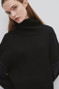 Oversized long sleeved turtleneck in lightweight Pima cotton with sewn sleeve details to create shaping at shoulder. More information - 94% Cotton, 6% Cashmere - Made in Italy - Style: 7398Y559BNA