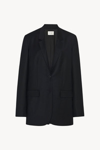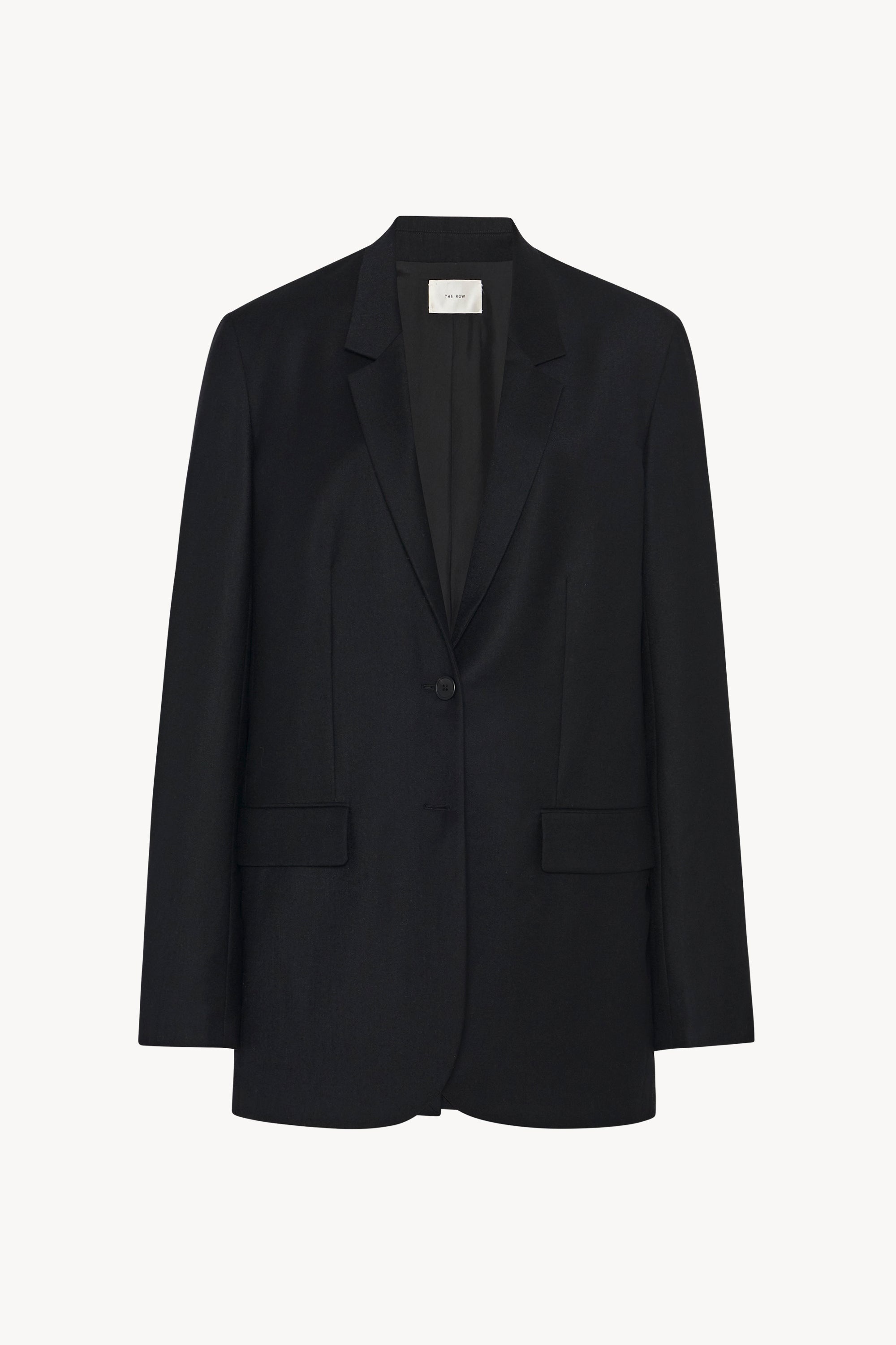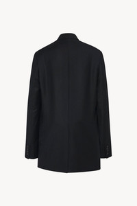 Tailored single-breasted jacket in soft virgin wool flannel with elongated silhouette, front flap pockets and center back vent.More information - - 100% Virgin Wool - - Lined in 100% Silk - - Made in U.S. - - Style: 5883W2107BLK