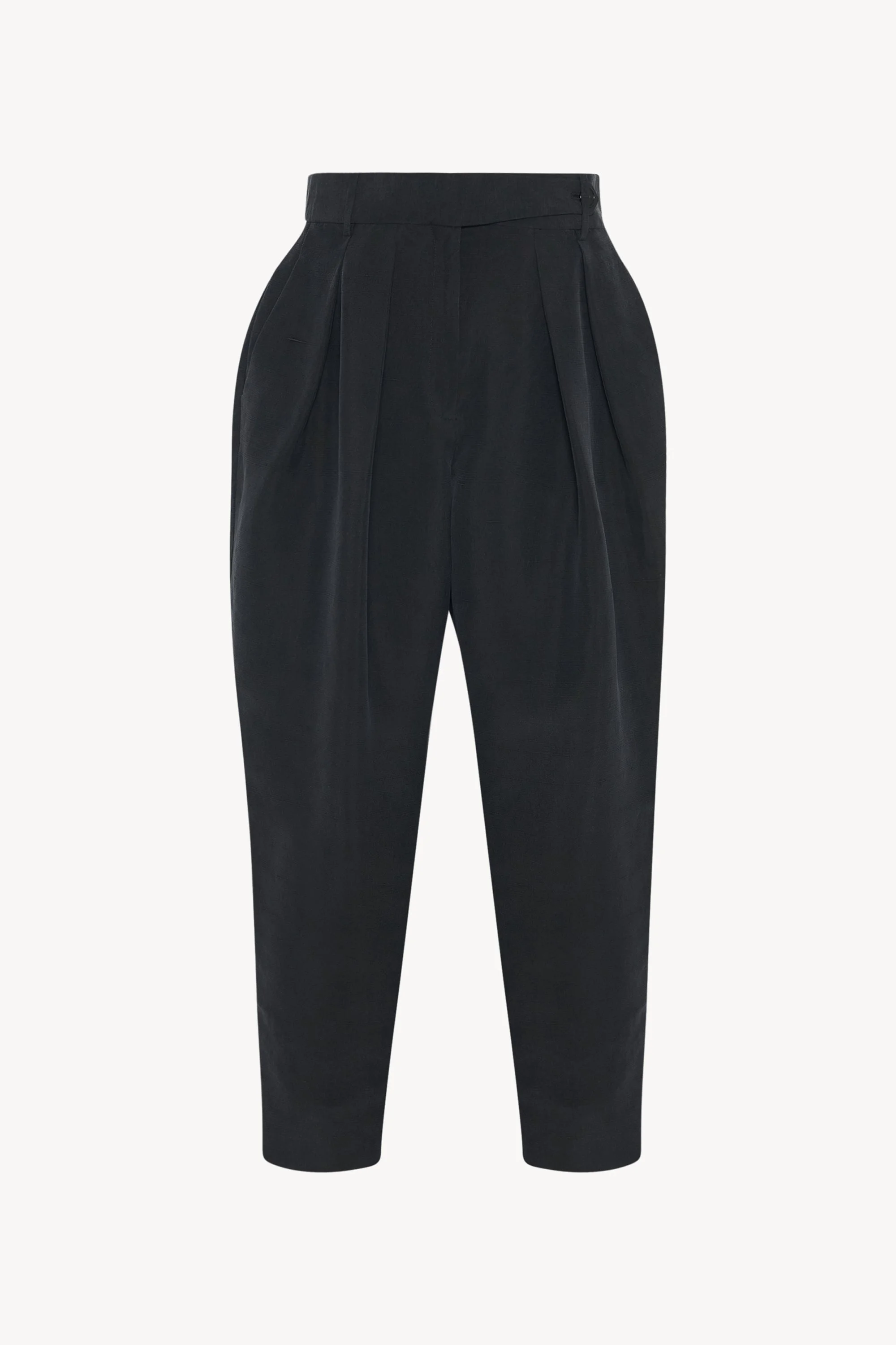 Low-rise trouser in natural silk shantung with tapered leg, triple front pleats, and side slash pockets. More information - 100% Silk - Lined in 100% Cotton - Made in Italy - Style: 8907W3952BLK