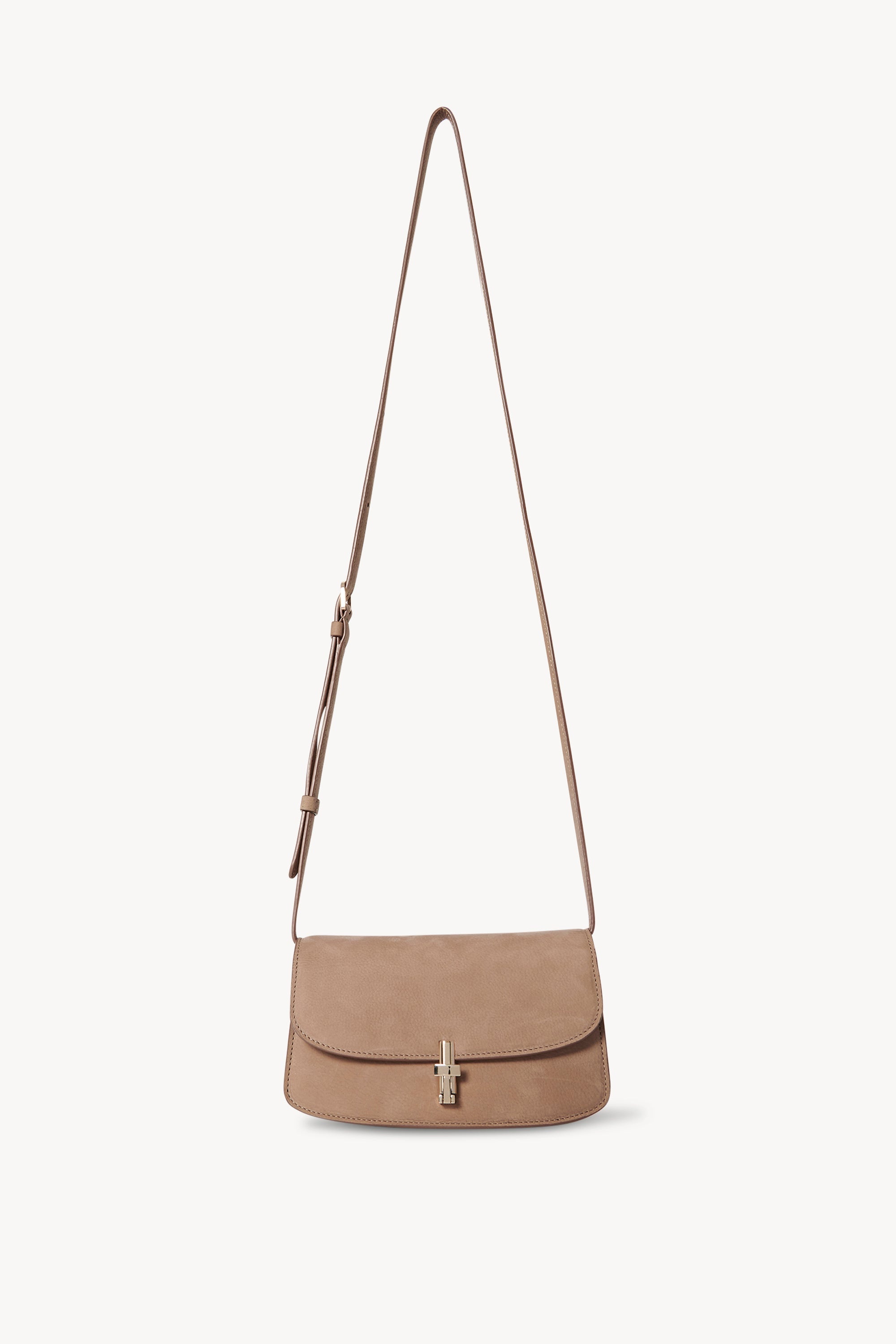 Small classic crossbody bag in soft nubuck leather with adjustable shoulder strap and lock closure. More information - 7.5 x 4 x 2 in. - 100% Leather - Made in Italy - Style: W1569L85TUNLG