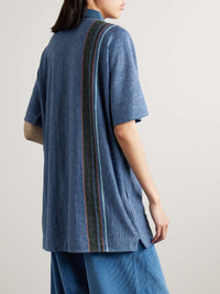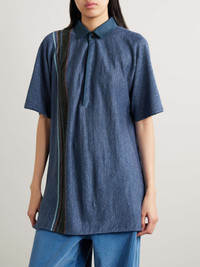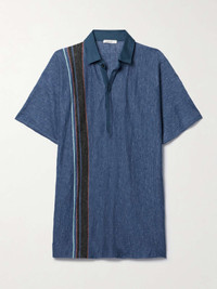 EDITORS'NOTES The Row's 'Eddie' shirt has a relaxed, sporty feel. It's made from breathable linen that's patterned with stripes along one side and has an oversized fit. Wear yours loose over slouchy pants for the coolest take. SIZE & FIT - Fits large to size, take one size smaller than normal - Intended for an oversized fit, cut to be worn very loose - Lightweight, slightly stretchy fabric - Model is 180cm/ 5’11” and is wearing a size XSmall DETAILS & CARE - Multicolored linen - Partially concealed button fastenings along front - 100% linen; trim: 100% cotton - Designer color: Blue Shade Large to size. See Size & Fit notes.