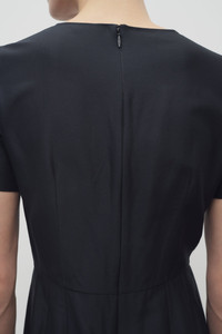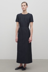 Ankle-length shift dress in woven cotton and silk voile with rounded neckline and fitted waist. More information - 69% Cotton, 31% Silk - Lined in 100% Silk - Made in Italy - Style: 8908W3838BLK