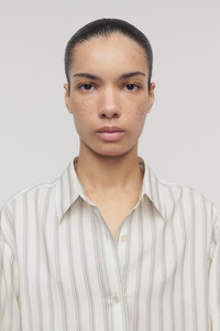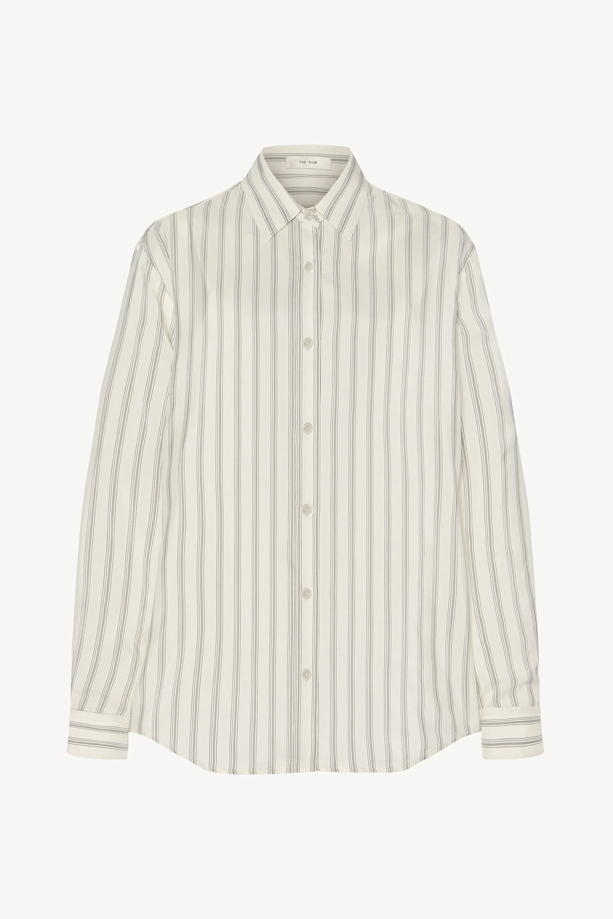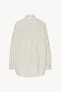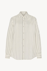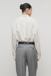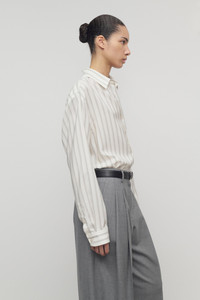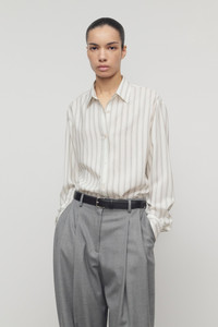 Classic button-up shirt in striped silk poplin with slightly curved hem, center back box pleat, and exposed front placket with mother-of-pearl buttons. More information - 100% Silk - Made in Italy - Style: 10170W4189GST
