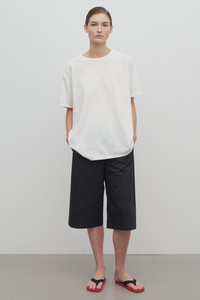 High-rise Bermuda pant in crisp lightweight cotton with minimal silhouette, side seam pockets, and elasticated waistband. More information - 100% Cotton - Made in Italy - Style: 8642W3676BLK