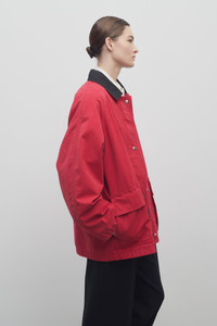 Outdoor jacket in washed Japanese cotton canvas with back storm flap, front patch pockets, and concealed front placket with snap and zipper closure. More information - 100% Cotton - Lined in 100% Cotton - Made in Italy - Style: 8913W3912RED