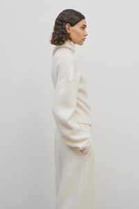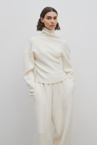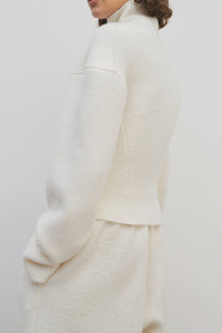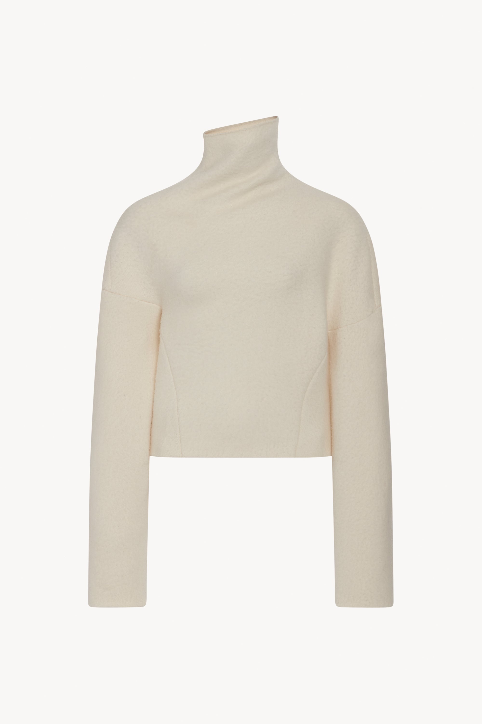 Asymmetrical long-sleeved top in brushed and felted Merino wool with twisted effect at neck and dropped shoulder. More information - 100% Merino Wool - Made in Italy - Style: 7632Y255SHL