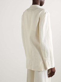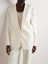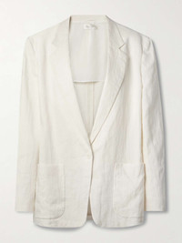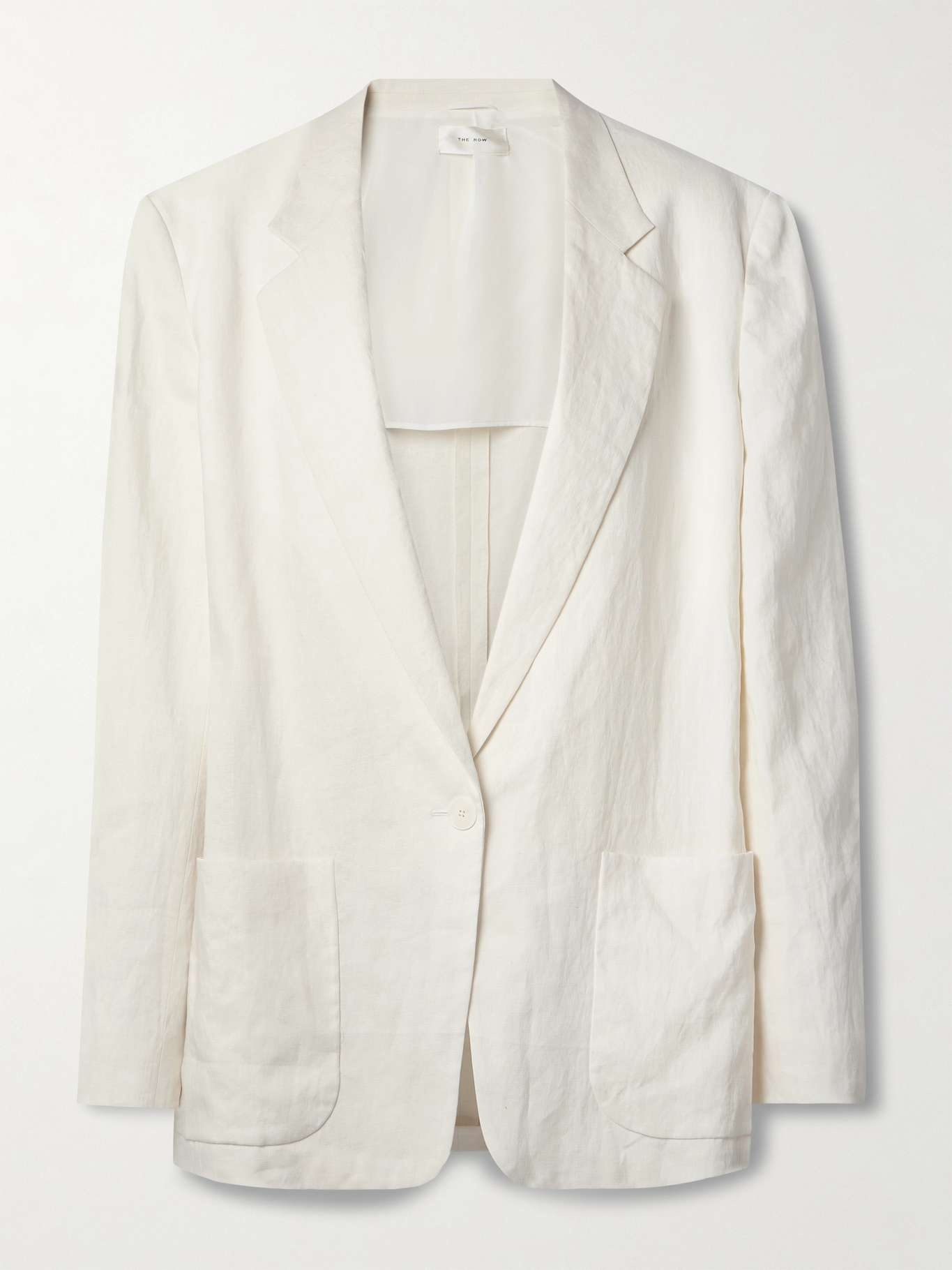 EDITORS'NOTES The Row's 'Enza' blazer is cut from linen for an airy, lightweight feel, making it perfect for summer. It has a relaxed shape with slim notched lapels and a partial silk lining for smoothness. Style yours with tonal pants and pumps. SIZE & FIT - Fits true to size, take your normal size - Designed for a relaxed fit - Long in the sleeves - Lightweight, non-stretchy fabric - Model is 180cm/ 5'11" and is wearing an IT 40 DETAILS & CARE - Off-white linen - Button fastening at front - 100% linen; lining: 100% silk
