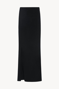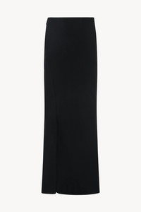 Fitted full-length skirt in fluid cady, featuring front and back side pleating, side zipper closure, and back vent with embroidered hook-and-eye detailing. More information - 69% Triacetate, 31% Polyester - Fully lined in 100% Silk - Made in Italy - Style: 10788W1968BLK