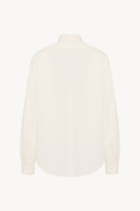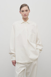 Oversized collared shirt in soft cotton and cashmere gabardine with front patch pocket, slim back yoke, and exposed polo placket. More information - 95% Cotton, 5% Cashmere - Made in Italy - Style: 8918W3670WHT
