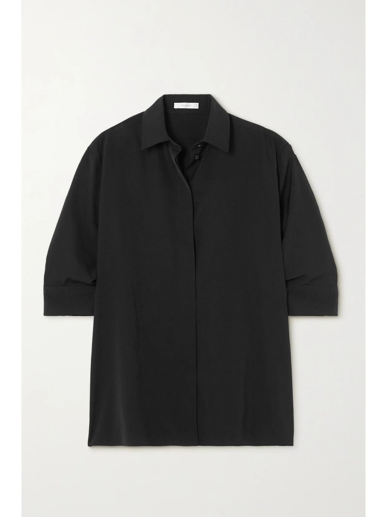 The Row's take on the classic button-up shirt is both elevated and refined. It's been made in Italy from black structured crepe and has a concealed button placket for a streamlined finish. Balance the relaxed fit with flared jeans.