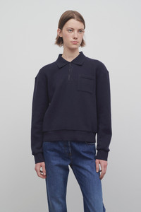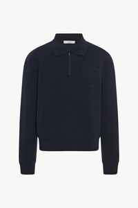 Long-sleeved, quarter-zip polo top in cashmere-cotton French terry with chest pocket and ribbed collar, cuffs, and hem. More information - 69% Cashmere, 31% Cotton - Made in Italy - Style: 8240K995NVY