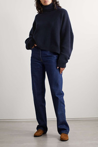 EDITORS'NOTES The Row's 'Ezio' sweater is made from a wool and cashmere-blend that's soft and insulating. It's designed for a boxy, relaxed fit emphasized by dropped shoulders and ribbed trims including a chic turtleneck. Style it with your favorite jeans or tailored pants. SIZE & FIT - Fits true to size, take your normal size - Intended for a relaxed fit - Mid-weight knit - Model is 180cm/ 5’11” and is wearing a size Small DETAILS & CARE - Midnight-blue wool and cashmere-blend - Slips on - 70% wool, 30% cashmere