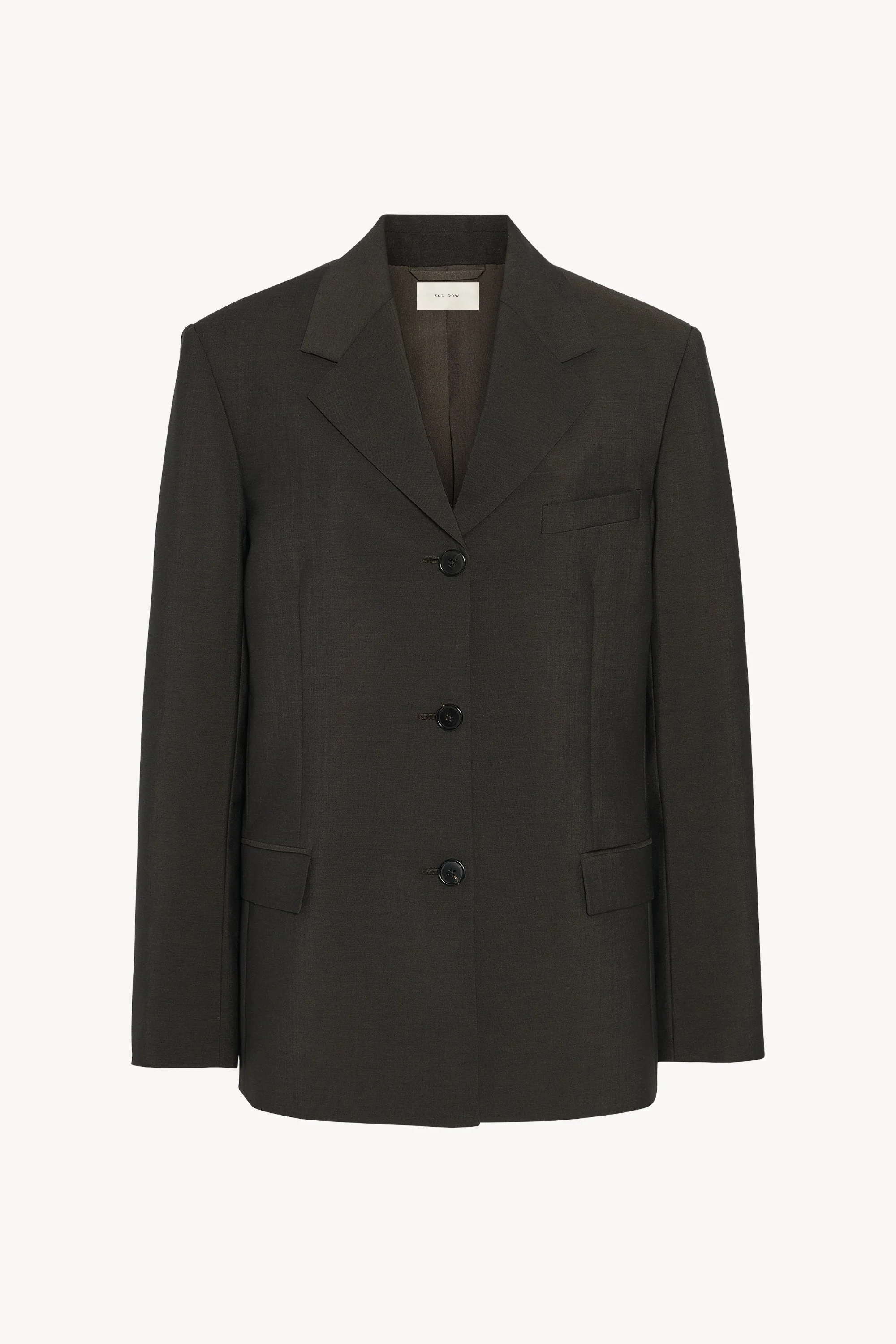 Structured single-breasted jacket in lightweight virgin wool and mohair with notch lapel, front flap pockets, and horn button closure. More information - 84% Wool, 16% Mohair - Lined in 100% Silk - Made in Italy - Style: 10149W4083DBR