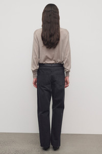 Mid-rise jean in richly textured black denim with wide straight leg, tonal topstitching, and classic 5-pocket construction. Crafted from spun and dyed natural cotton, the fabric offers a deep nuanced color and intentional unevenness that develops character over time. More information - 100% Cotton - Made in Japan - Style: 10803W4424BLK