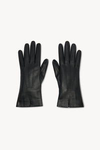 Classic leather gloves in smooth nappa leather with notched cuff and topstitch detailing. More information - 100% Lambskin Leather - Lined in 100% Silk - Made in Italy - Style: 8512L338BLK