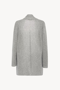 The Row Essentials long cardigan in foamy cashmere knit with open front and shawl collar. More information - Signature stitching along the back - 100% cashmere - Made in Italy - Style: 5584Y187MHG