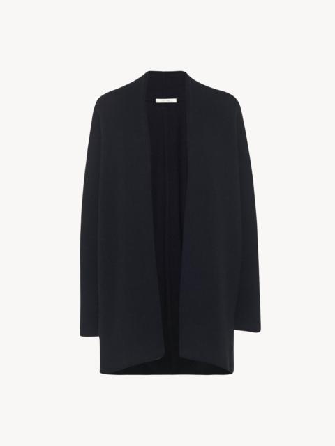 The Row Essentials long cardigan in foamy cashmere knit with open front and shawl collar. More information - Signature stitching along the back - 100% cashmere - Made in Italy - Style: 5584Y187BLK