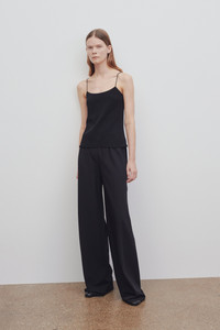 Bias-cut pant in fluid double-faced cady with slim gathered elastic waistband and wide leg. More information - 69% Triacetate, 31% Polyester - Made in Italy - Style: 1766W1968BLK