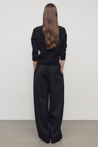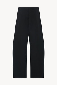 Minimal mid-rise pant in fluid heavyweight wool twill with barrel leg, seamless sides with folded pleats, and concealed side welt pockets. More information - 100% Wool - Made in United States - Style: 10872W4474BLK