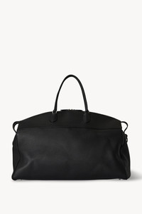 Oversized utilitarian luggage-style bag in grained calfskin leather with subtle edge piping, hand-stitched top handles, and concealed D-ring closure for adjustable functionality. More information - 100% Calfskin Leather - Made in Italy - Style: W1631ML129BAS