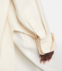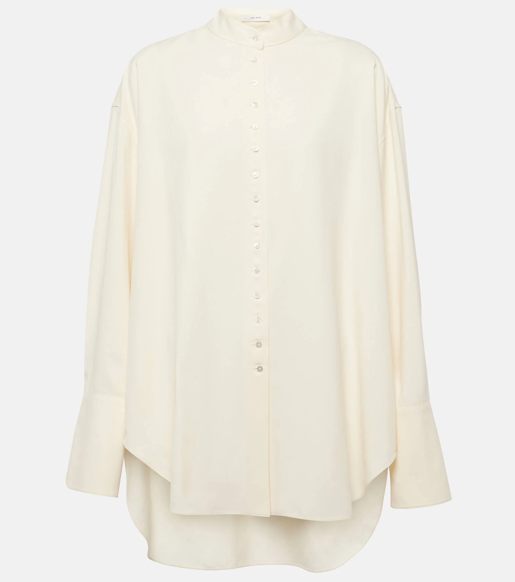 Product Details - Material: 100% silk - Care instructions: dry clean - Made in Italy - Designer color name: Bisque - Closure: buttoned front - Contains non-textile parts of animal origin - Item number: P00912156 Size & Fit - True to size - Dropped shoulders - Designed for a loose fit - Non-stretchy fabric - Falls below the hip - The model seen in the picture is 178cm-5'10" and wearing a size XS