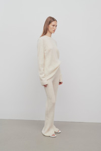 Full-length pant in soft spun cashmere with elastic waistband and and slightly flared hem. More information - 100% Cashmere - Made in Italy - Style: 8091Y114GRE